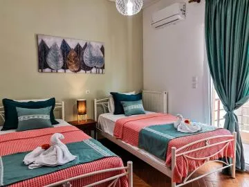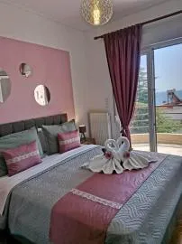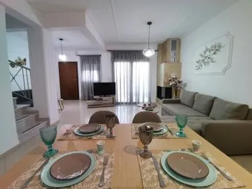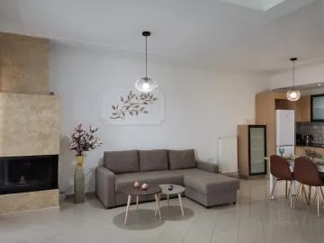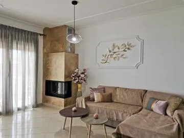 This air-conditioned holiday home has a private entrance and consists of 1 living room, 3 separate bedrooms and 2 bathrooms with a bath and a hairdryer. In the well-equipped kitchen, guests will find a stovetop, a refrigerator, kitchenware and an oven. The holiday home features tiled floors, a seating area with a flat-screen TV, a washing machine, soundproofed walls and sea views. The property can accommodate up to 7 people and is just a 4-minute drive from Kalamitsa Beach.