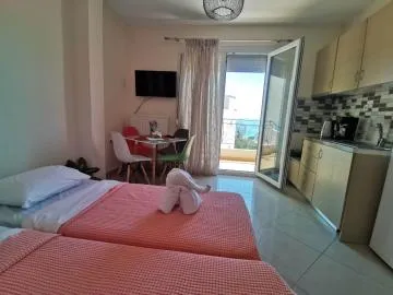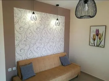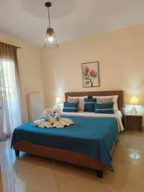 This air-conditioned apartment has a private entrance and is serviced by a lift and consists of 1 living room, 1 separate bedroom and 1 bathroom with a bath and hairdryer. The fully equipped kitchen includes a stovetop, refrigerator, kitchenware and oven. This apartment features soundproofed walls and a seating area with a flat-screen TV. The accommodation can accommodate up to 4 people and is just a 4-minute drive from Kalamitsa Beach.