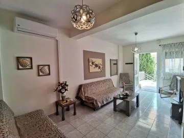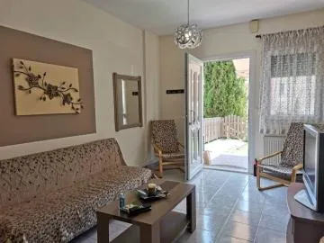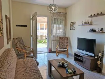 This air-conditioned holiday home features a private entrance, 1 living room, 2 separate bedrooms, 1 bathroom with a shower and a hairdryer. In the kitchen, guests will find a stovetop, a refrigerator, kitchenware, an oven and a washing machine. In the living room, there are 2 sofa beds and a flat-screen TV. This holiday home features a terrace with garden views and is just a 3-minute walk from Kalamitsa Beach.